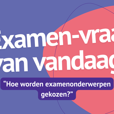 26-03-2026 | Nieuws Hoe worden examenonderwerpen gekozen? In de serie ‘Examen-vraag van vandaag’ licht een collega telkens één vraag toe.Heb jij je ooit afgevraagd wie de vragen voor centrale examens bedenkt? Of hoe maatschappelijke thema’s ons werk raken? In onze serie ‘Examen-vraag van vandaag’ licht een collega elke keer één vraag toe en neemt je mee in ons werk.