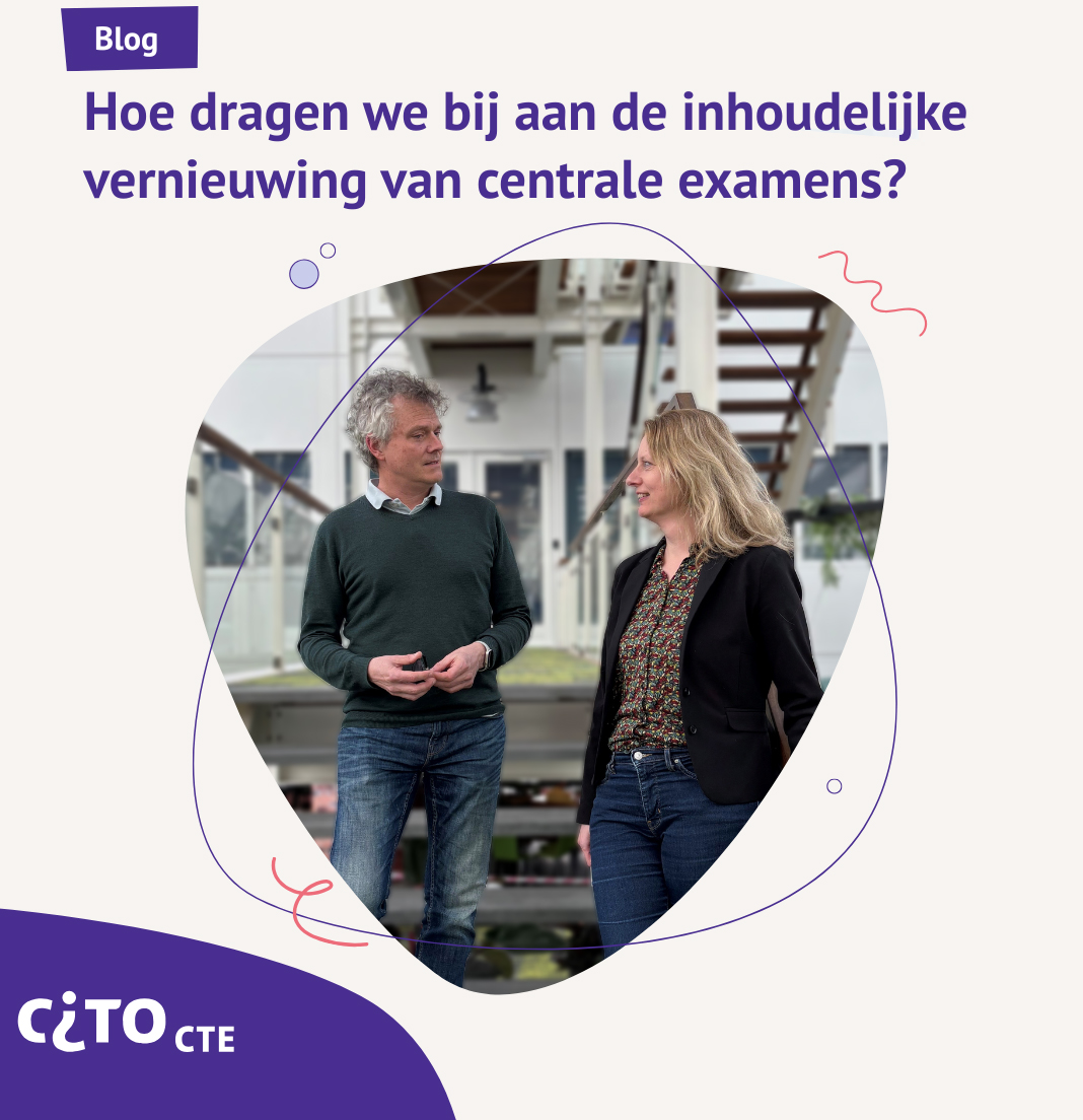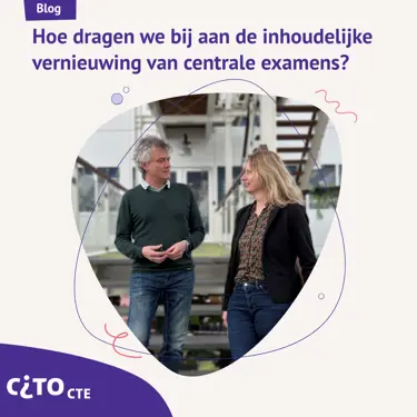 30-03-2026 | Blog In een vijfdelige blogserie vertellen collega’s hoe wij bijdragen aan de centrale examens vo die in januari gestart zijn.Het is weer examentijd in het vo! Tijdens deze periode laten collega’s in een vijfdelige blogserie zien hoe wij bijdragen aan dit jaarlijkse toetsmoment, nu en in de toekomst. In deze derde aflevering vertellen Rosa Bartman en Chiel Huijskes over Cito’s rol bij de inhoudelijke vernieuwing van centrale examens.