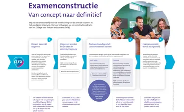 Het maken van een centraal examen met de juiste balans van onderwerpen, domeinen, vraagsoorten, vaardigheden, etc. is een zorgvuldig traject. Gemiddeld zit er zo’n 1,5 tot 2 jaar tussen het bedenken van een eerste conceptvraag en het moment waarop de eindexamenkandidaat de vraag krijgt voorgelegd. Dit heeft te maken met de grote mate van zorgvuldigheid die nodig is om goede, veilige en betrouwbare centrale examens te maken.