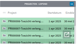- Projecten – Lopend – Dit zijn alle lopende projecten waarvoor nog een declaratie kan worden ingediend.
