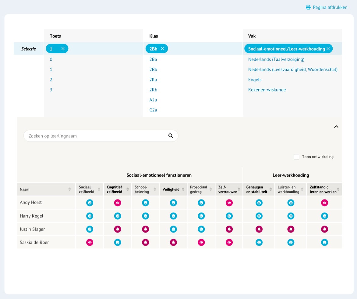 Er zijn verschillende rapportages, bestemd voor de leerling zelf, ouders of verzorgers, mentoren, vakdocenten, kwaliteitsmedewerkers en het management. Zo kan iedereen op zijn eigen manier het maximale eruit halen.