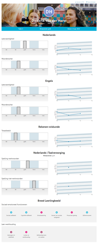 Het liefst wil je meteen weten waar een leerling, klas of zelfs je school staat. Je wilt in een oogopslag zien bij wie het goed gaat en bij wie iets minder, en hoe je daar met je onderwijsprogramma invulling aan kunt geven. De rapportages in Leerling in beeld VO geven je daarbij direct houvast.