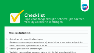 In deze checklist vind je tips voor het ontwerpen van toegankelijke schriftelijke toetsen voor leerlingen met dyslexie.